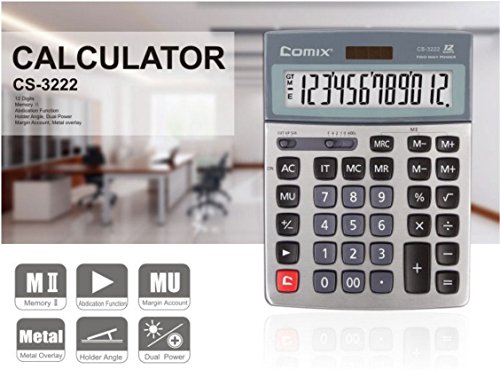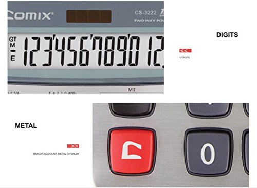 -. Title : Comix Metal Desktop Electronic and Solar Calculator, 12 Digits and Black.