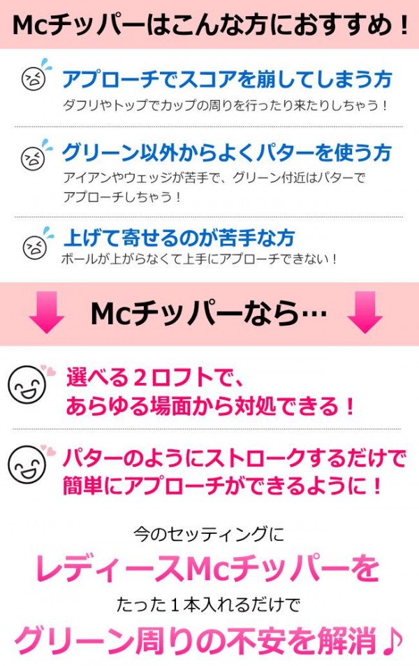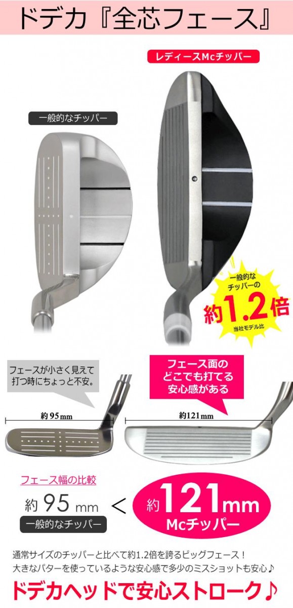 世界最大級サイズのレディスメガチッパー。グリーン回りでのアプローチがラクラク。