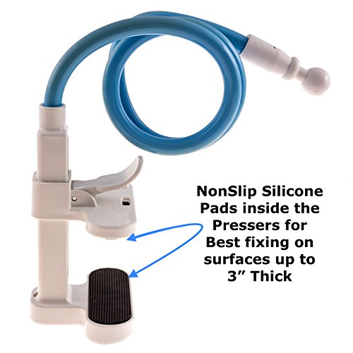 FITS ANY DEVICE UP TO 4 WIDE & 12oz! SUPER STRONG LONG ARM & EASY POSITION CLAMP. NOTHING COMPARES -Fits iPhone, Blackberry, GPS, cameras, & more. Attaches to virtually any table or counter up to 3" thick. Keep your hands free, become instantly more productive!