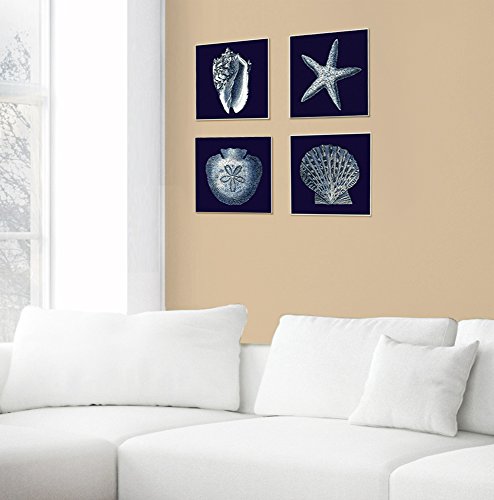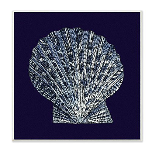 Stupell Home Décor Distressed Navy and White Scallop Shell Wall Plaque Art, 12 x 0.5 x 12, Proudly Made in USA