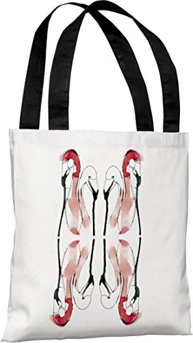 One Bella Casa Flamingos Tote Bag by Judit Garcia Talvera, 18"x 18", White/Red