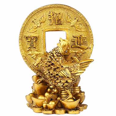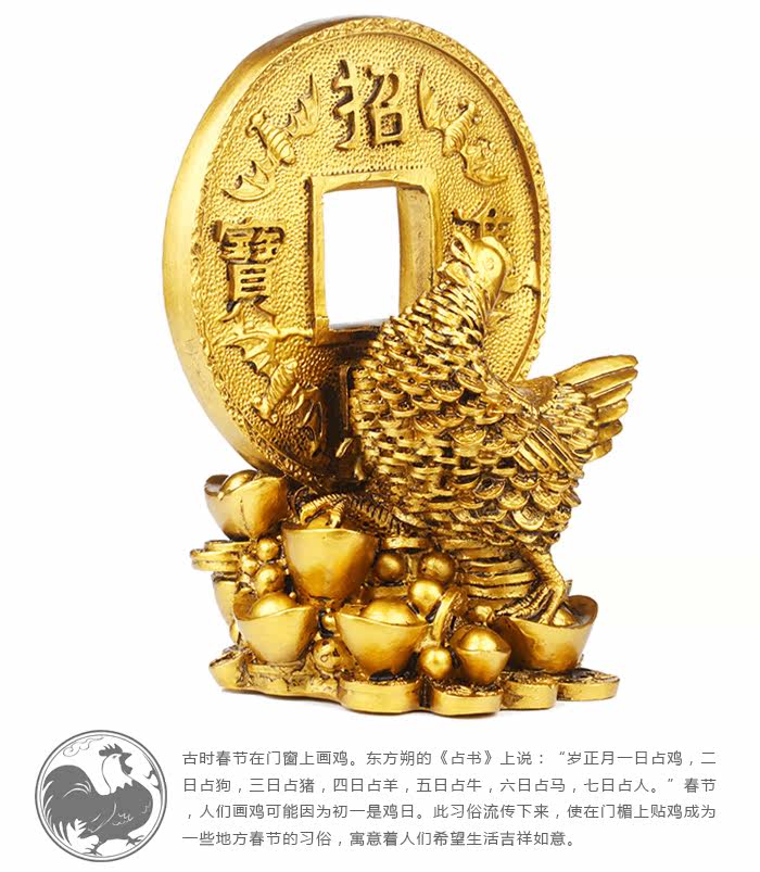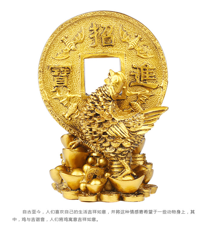 雄鸡,因拥有高耸火红的鸡冠,外观雄壮漂亮,而且,"冠"与"官"谐音,字面的意思是礼。古人以冠冕堂皇为礼,含有升迁腾达的寓意,人们将更多吉祥、腾达的寓意寄托于鸡身上。