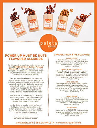 -. Binding : Grocery -. Brand : paleta -. Feature : Reduce risk of heart attacks / Lowers bad cholesterol / Protect your atery walls from damage / Help alkalize the body and build healthy bones and teeth / The healthy fat aids in weight loss. They satisfy cravings and lower the rise in blood sugar and unsulin after meals -. Label : PALETA -. Manufacturer : PALETA -. ProductGroup : Grocery -. ProductTypeName : GROCERY -. Publisher : PALETA -. Studio : PALETA -. Title : PALETA Must Be Nuts! Flavored Almonds