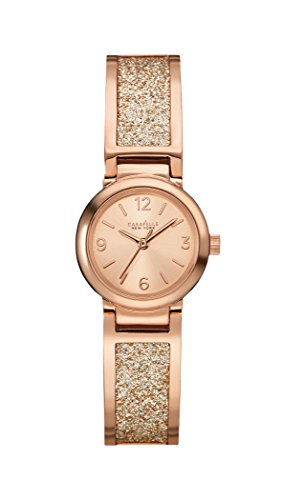 Stainless steel bangle watch with rose-gold finish and glittering rose fabric inset