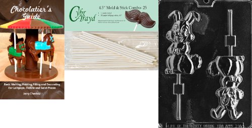 Cybrtrayd 'Medium Happy Bunny Lolly' Easter Chocolate Candy Mold with 25 4.5-Inch Lollipop Sticks and Chocolatier's Guide
