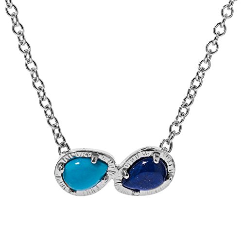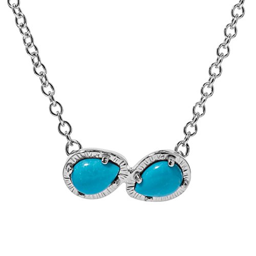This sterling silver chain necklace is adorned two pear-shaped turquoise gemstones giving it a simplistic and beautiful look.