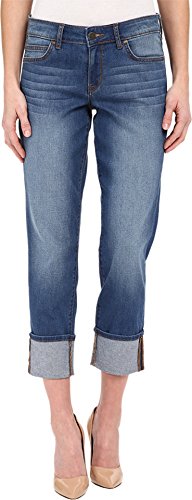 Rose Marie is classic medium-light blue hue with slight fading and whiskers for the ultimate laid-back look. Five-pocket construction with an embroidered Cj insignia on the right rear pocket. Contrast topstitching. Belt loop waistband. Rolled cuffs. Zipper fly and button closure. 90% cotton, 8% polyester, 2% spandex. Machine wash cold, tumble dry low.
