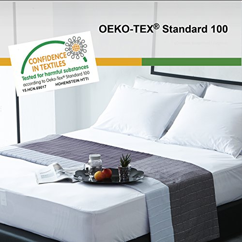 -. Feature : Soft and durable polyester surface / Breathable, noise free, vinyl free, hypoallergenic and 100% waterproof / Protection against bed bugs, dust mites, spills, sweat, urine, mold spore, pollen, pet dander / Great to prevent asthma, rhinitis and eczema / Fitted sheet style: easy to put on and take off / Machine washable / Chemical free (Oeko-Tex Standard 100 certified) / 10-Year Warranty
