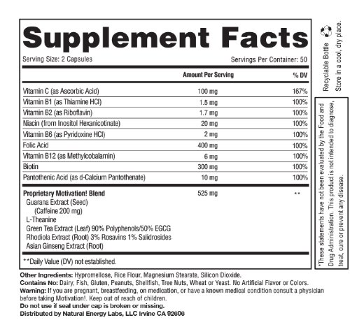 - Title : Motivation!: Herbal Caffeine + Energy Vitamin Supplement (W/ 200mg of Herbal Caffeine, Ginseng, Green Tea, Guarana & More, 100 V-pills)