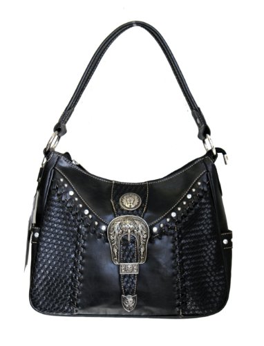 Montana West brand western style ladies purse. Made with high quality tooled PU leather, weaved basket design, decorated with silver buckle.