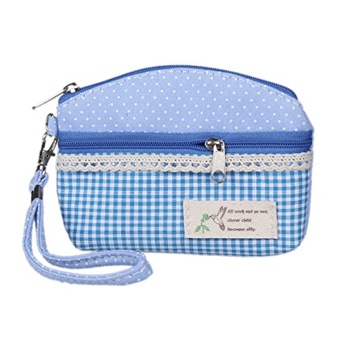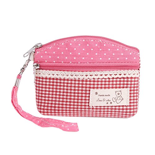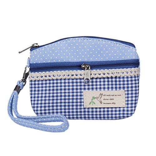 Product Description You shall never miss this sweet coin purse! Made of premium canvas. This bag is in classic checked print. Equipped with detachable wristlet. There is a line of graceful lace crochet. Outside has a small closure for you to carry tiny things like keys. Inside is a main pouch to hold your cash, coin or card. The bag has lining equipped. Fastened with zipper on the top. Bag measurement approximately: bag length 13.8cm (5.2 inches); width 10.7cm (4.2 inches); height 1.5cm (0.59 inch). 0