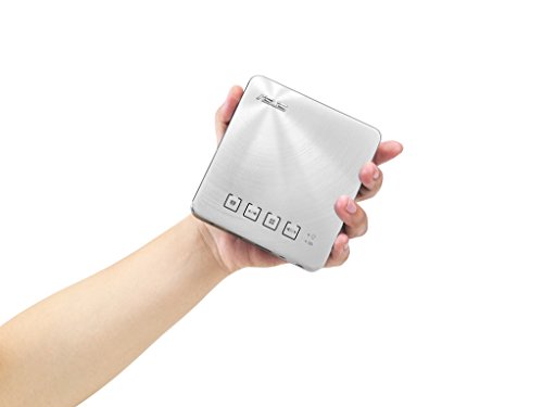 A palm-sized projector weighing only 0.75lbs at a height of 1.18-inches, the ASUS S1 LED projector features a built-in rechargeable battery that provides up to 3 hours of projection time that can also be used to charge mobile devices over USB. The S1 has a 1.1:1 short-throw lens that projects a 41-inches diagonal image at a distance of one meter. Housed in an aluminum chassis with a sleek concentric-circle finish, and features an HDMI/MHL port, a USB port (for charging) and an ASUS Sonic Master-enhanced speaker, making the S1 the perfect sidekick for both professional and personal projection.Feature