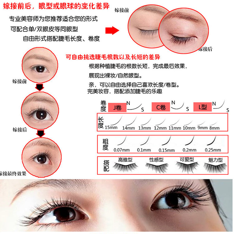 美睫家 嫁接种植睫毛单根混号蚕丝黑色...