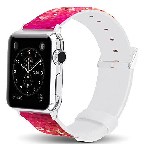 Apple Watch Band 38mm,Jolook Soft Leather Sport Style Replacement iWatch Strap for Apple Watch Series 1 Series 2 38mm Models - Red and Shining Sand