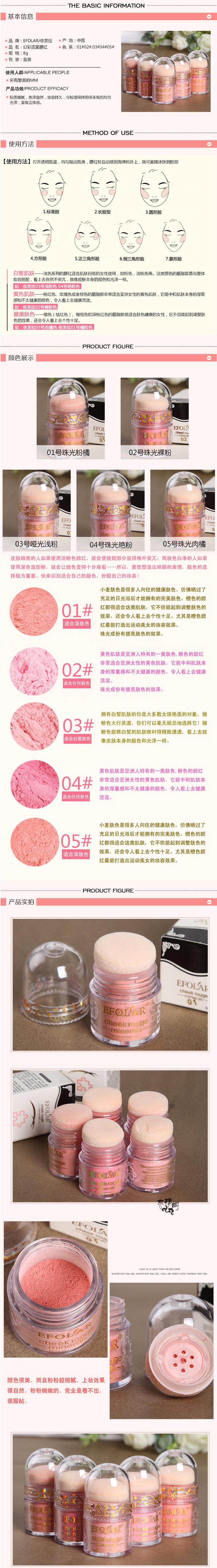 PS:这款腮红在运输途中,会出现粉扑上出粉现象,因为本身是拍打出来的,所以碰撞会出现这个问题,接受不了的MM慎拍!不以粉扑有粉为使用过的理由。谢谢!