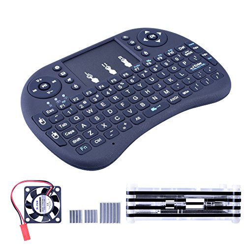 kuman 6 In 1 Professional Kit for Raspberry Pi 3 2 B and Pi B+,Black Sliced 9 Layers Case Box + Cooling Fan + Wireless Mini Keyboard + 2pcs Micro USB Cable (one with Turn/on Switch)+Heat Sinks SC03