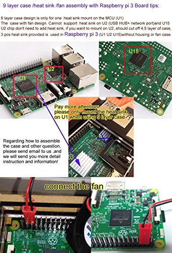 Sliced 9 Layers Case Box is compatible Raspberry Pi 3 2 Model B B+(with fan design, only support MCU U1 heat sink mounting)