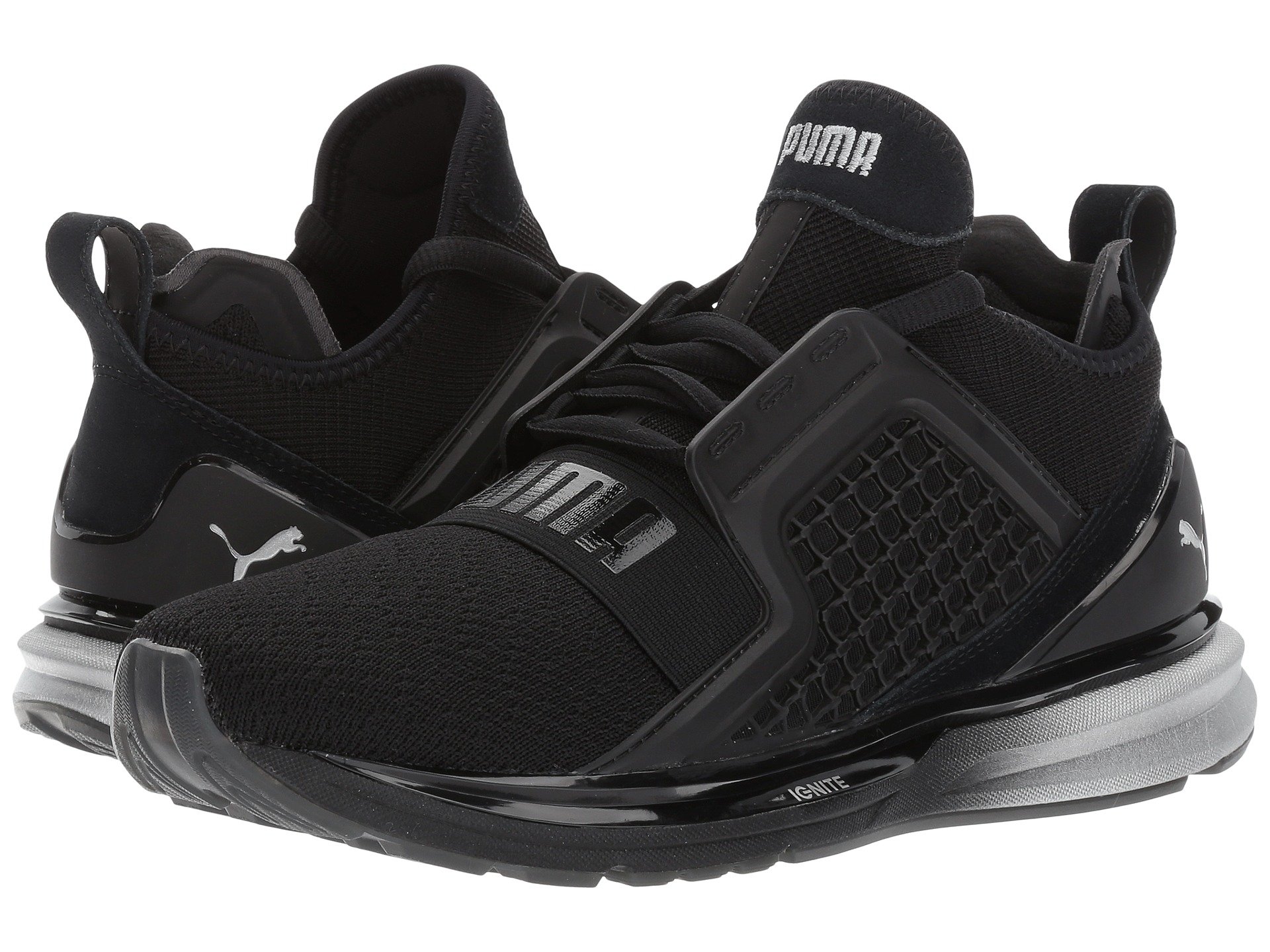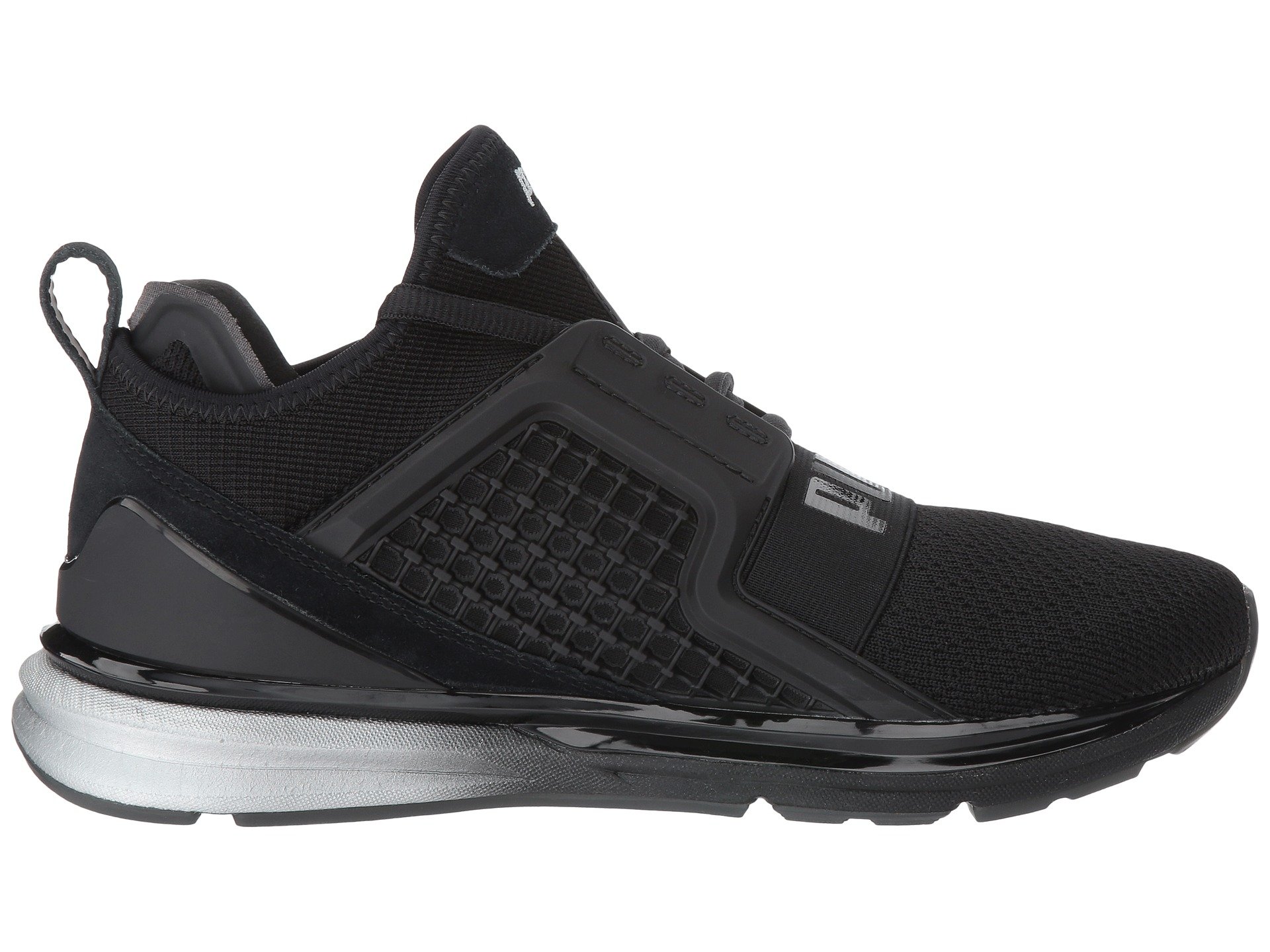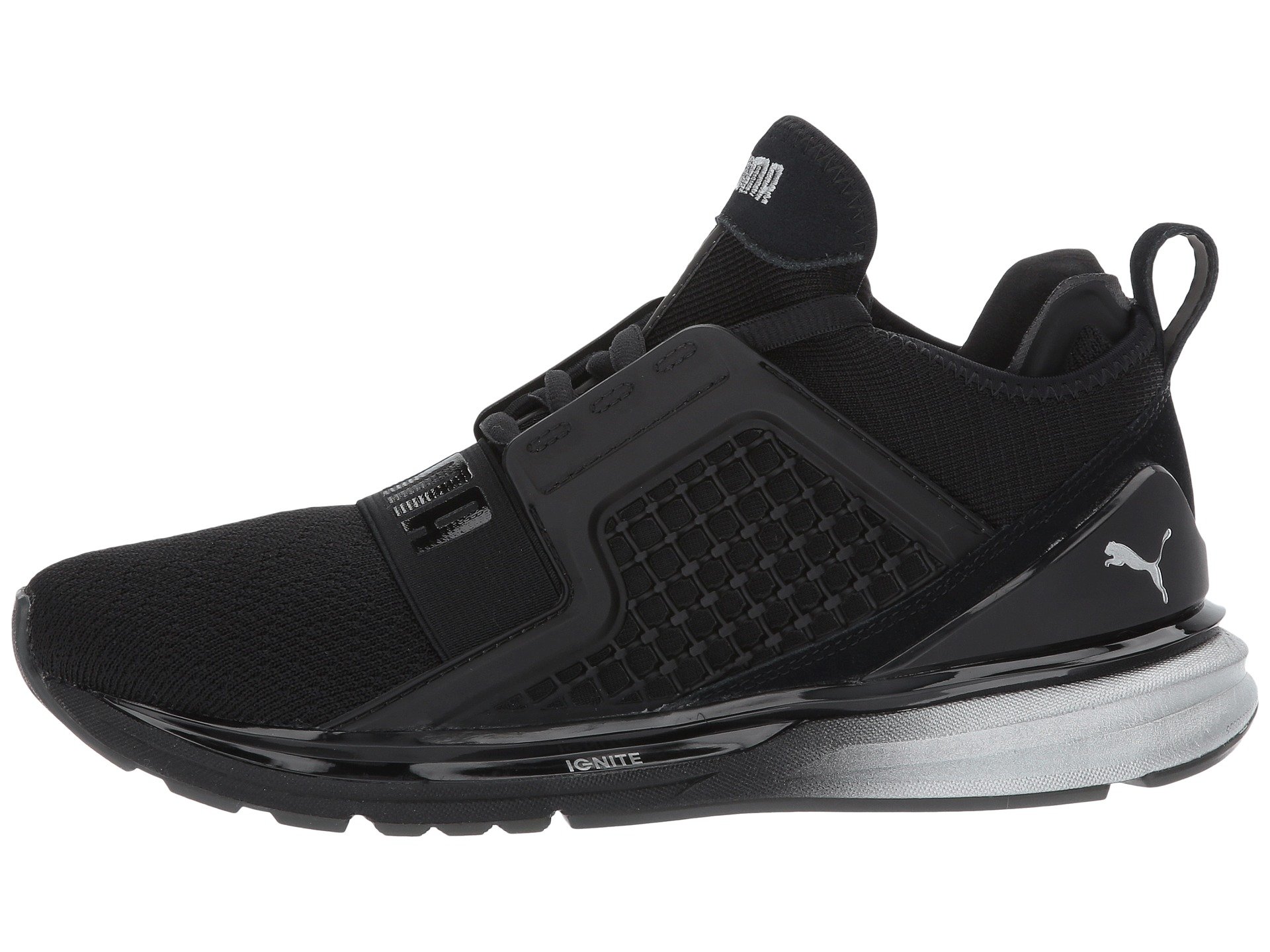 | Product Information SKU: #8896526Luxe detailing, bold style, and aggressive dimensions make the Puma? IGNITE Limitless Metallic shoe a true game changer!Features breathable, color blocked, four-way stretch Ariaprene? fabric uppers.Clamshell construction with a TPU Kurim midfoot cage for maximum protection and durability.Bootie construction in a sporty, ankle-high silhouette.Lace-up closure with an elastic band at top-of-foot. Easy pull-on style with a heel tab.Offers a carbon-fiber heel clip and ballistic stretch strap at forefoot with PUMA branding.Injection-moulded EVA at midsole for lightweight performance.IGNITE Foam for superior energy return.Reflective details for night visibility.Features a crystal rubber outsole with full contact traction control.Imported.Product measurements were taken using size 8.5, width B - Medium. Please note that measurements may vary by size.Weight of footwear is based on a single item, not a pair.Measurements: Weight: 11 oz |