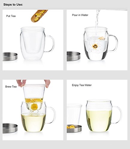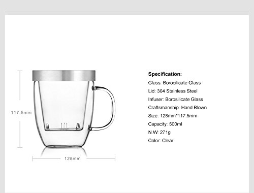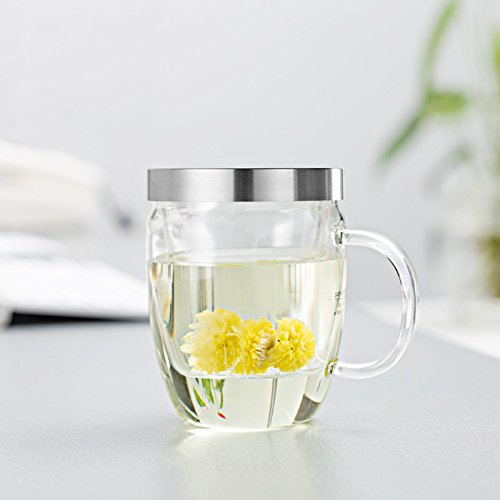 Samadoyo 500ml (16.9oz) Borosilicate Glass Tea Mug with Infuser and Stainless Steel Lid