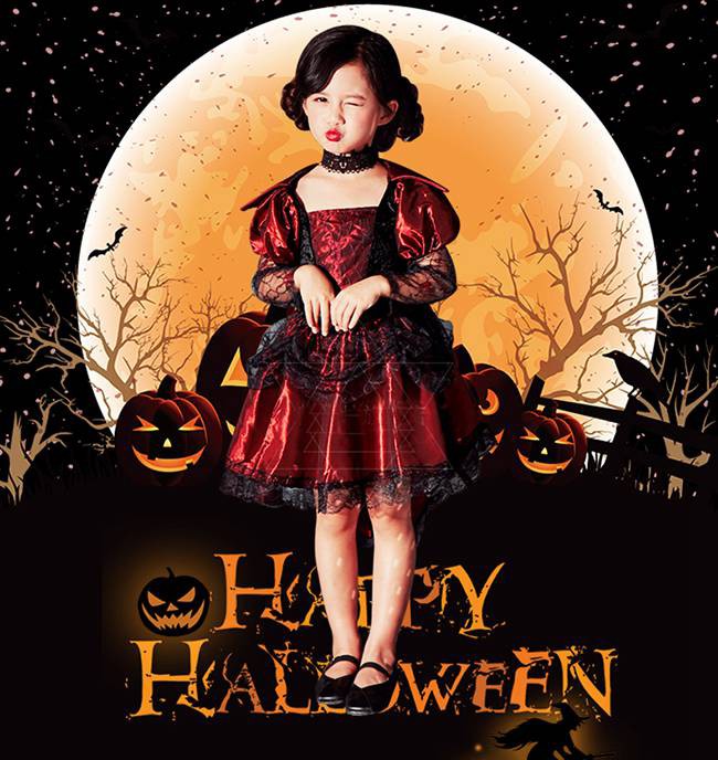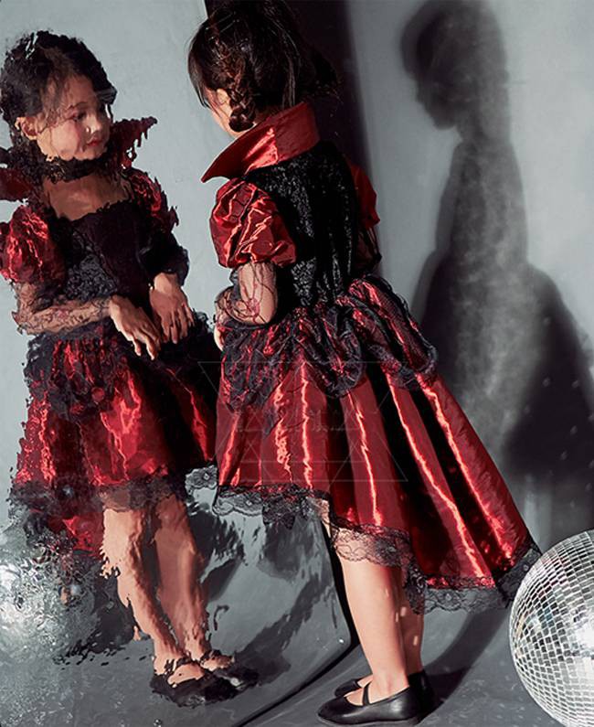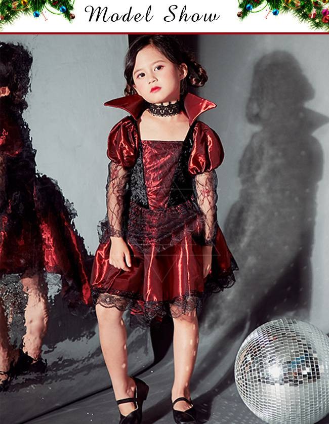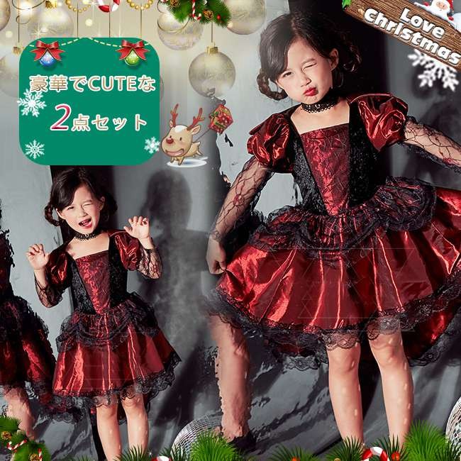 クリスマス コスプレ 子供 女の子 魔女 吸血鬼 バンパイア ヴァンパイア ゴスロリ キッズ 子ども コスチューム 衣装 仮装 変装 服 赤 レース 長袖 ゴシック ドレス セットアップ かわいい パーティーグッズ イベント用品 xmas Christmas cos
