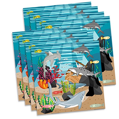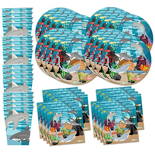-. Title : Shark Birthday Party Supplies Set Plates Napkins Cups Tableware Kit for 16 by Birthday Galore