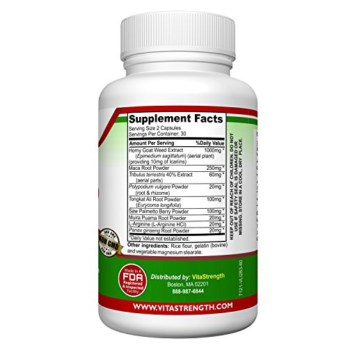 -Maca Root Powder, Macuna Pruriens, Polypodium Vulgare, Tongkat Ali, Saw Palmetto, Muira Pauama, Arginine, Panax Ginseng