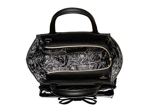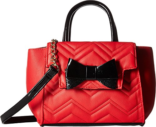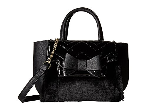 Show off your stylish taste with this chic Betsey Johnson® Crossbody Satchel. Made of synthetic leather or synthetic leather with faux-fur detail. Zipper closure. Two rolled carrying handles. Removable and adjustable crossbody strap. Exterior features a large bow detail, one slip pocket, and one zip pocket. Flat base. Lined interior features one zip and two slip pockets. Imported. Measurements: Bottom Width: 9 3⁄4 in Depth: 5 in Height: 7 3⁄4 in Strap Length: 52 in Strap Drop: 23 in Handle Length: 11 1⁄2 in Handle Drop: 4 in Weight: 1 lb 7 oz This product may have a manufacturer's warranty. Please visit the manufacturer's website or contact us at warranty@support.zappos.com for full manufacturer warranty details.Feature