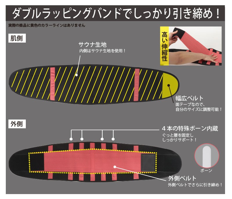 | 商品説明 | 巻いて超発汗!?2STEPで簡単装着。 ウエストを引き締め美姿勢を意識。 |