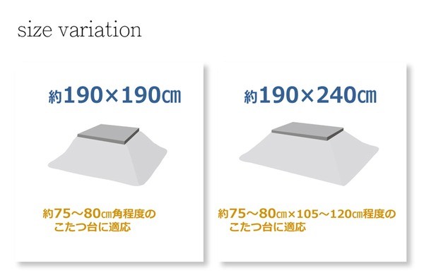 【適応サイズ】75~80cm角のこたつ台に適応