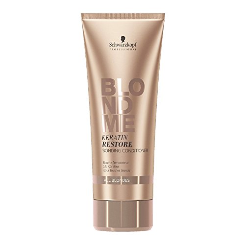 -. Binding : Health and Beauty -. Brand : Schwarzkopf Professional -. EAN : 4045787369915 -. Feature : Protects and repairs lightened and coloured hair / Creates new bonds within the hair fibres / Balances the optimum moisture level of porous lightened hair / Helps to detangle the hair making it easy to comb / Smoothes the surface of porous hair for optimum blonde colour shine -. IsAdultProduct : 0 -. Label : Schwarzkopf Professional -. Manufacturer : Schwarzkopf Professional -. Model : 4045787369915 -. MPN : 4045787369915 -. PackageQuantity : 1 -. PartNumber : 4045787369915 -. ProductGroup : Beauty -. ProductTypeName : BEAUTY -. Publisher : Schwarzkopf Professional -. Studio : Schwarzkopf Professional -. Title : Schwarzkopf Professional BlondMe All Blondes Keratin Bonding Conditioner 200ml
