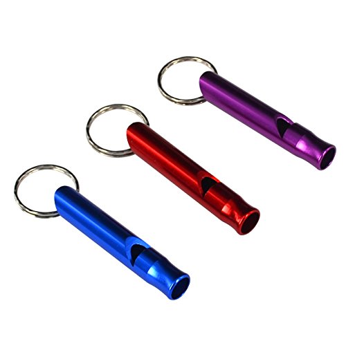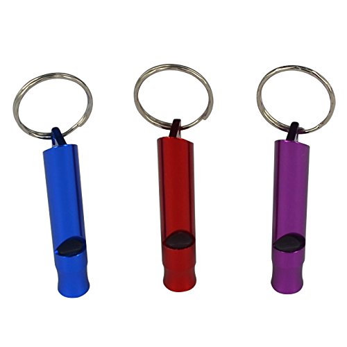 YESTARUSA® Emergency Hiking Camping Survival Aluminum Whistle Key Ring Chain Pack of 3 Blue/Red/Purple