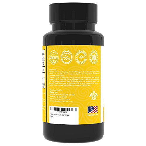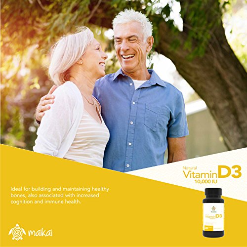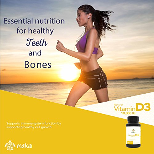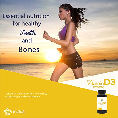 -. Feature : Ideal for building and maintaining healthy bones, also associated with increased cognition and immune health.* / Supports the body's absorption of Calcium and Phosphorous, which are essential for the development and maintenance of healthy teeth and bones.* / Supports immune system function by supporting healthy cell growth.* / Easy to swallow 10,000 IU softgels. Some research indicates Vitamin D3 in liquid softgel form is more bioavailable then tablet or powdered forms.* / Made in USA: Our Vitamin D 10,000 IU Softgels are easy to swallow. Third party tested for purity and potency