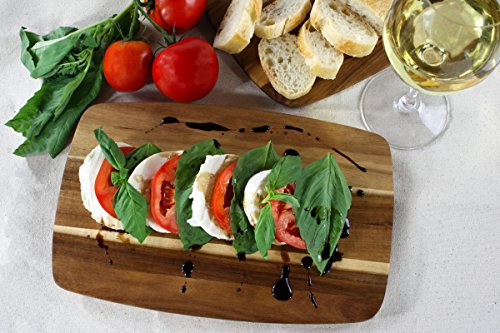 Terra Teak Wood Serving Board and Medium Sized Tray, Measures 12 x 8 Inches and 1/2 Thick