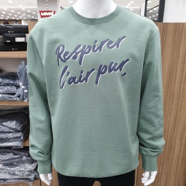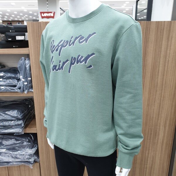 NIX 2019년 봄 신상 입니다. C/P 삼단쭈리 베이직핏. 프랑스어를 활용하여 레터링에 변화를 준 디자인의 맨투맨 입니다. (의미:맑은공기를 마시다) 마네킹 100size 착용