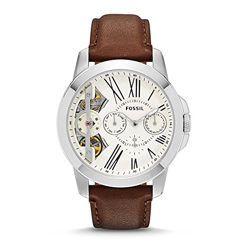 Fossil Mens Grant Watch In Silvertone With Dark Brown Leather Strap