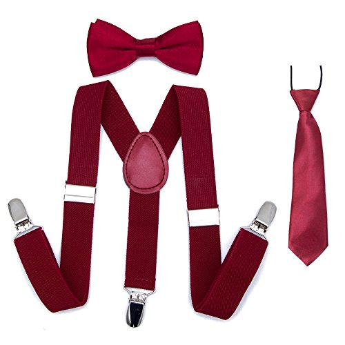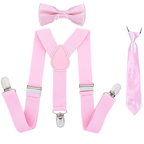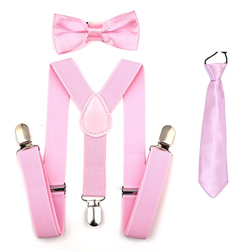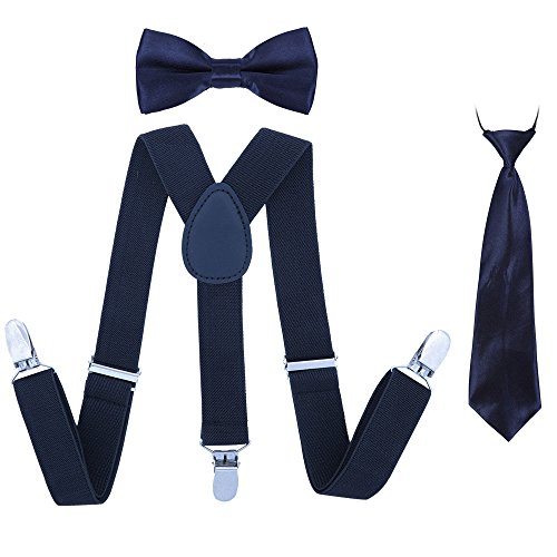 Binding : Apparel Product Description A CLASSIC ALTERNATIVE TO EVERY DAYS! THESE ADJUSTABLE Kajeer SUSPENDER, BOW TIES AND NECKTIE WILL BRING YOUR BABY A UNIQUE LOOK EXPERIENCE! SIMULTANEOUSLY ADD A SOPHISTICATE TOUCH TO SCHOOL UNIFORMS, TUXEDOS, OR RING BEARER OUTFITS! ★ Why choose Kajeer Suspenders Set? (1) High quality! Heavy duty! Good service! (2)Kajeer Suspenders Set included: Suspender, Bow tie and Necktie! It is an excellent gift idea! ★ Friendly tips: Suspenders, Bow tie and Necktie may have some differences in color! Please feel free to contact "Jerrybaby" if you can not accept the difference in color after you have purchased it! Thanks! ★ ANY OCCASION 9 common places and more special occasions etc. Good quality classic suspenders sets are ideal for any occasion like birthdays ,weddings, parties, school uniforms, tuxedos, ring bearer outfits, dance groups, work attire, school functions! ★ 100% SATISFACTION GUARANTEED ★ (1) 30 days money back guaranteed! (2) 24 hours custmer support! (3) If you have any problems, please feel free contact "Jerrybaby"! Thanks!