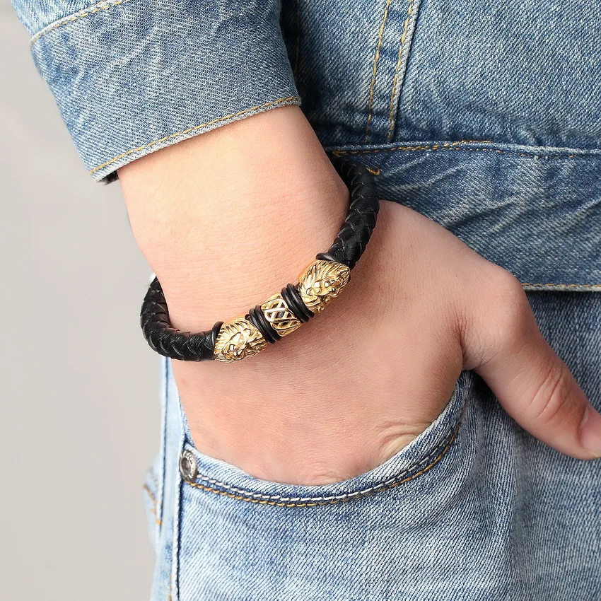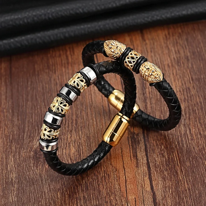 Name:Genuine Leather Stainless Steel Bracelets