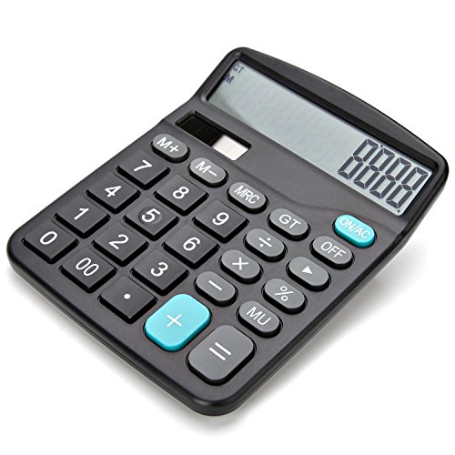 -. Feature : One AAA Battery Required (NOT included) - This calculator requires an AAA battery to operate correctly. It also has Solar Panel as a secondary power source. It will automatically switch to solar from battery when solar power is strong enough. However, battery is required to ensure continuous operation without disruption. / Large 12-digit display for Desktop or Handheld / Size: 5.8 inch X 4.3 inch X 1.4 inch / perfect size for office business and home use more preferential info as follows / Durable construction that is designed to last