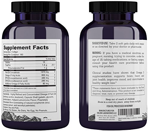 Eklund Essential Omega - Norwegian Fish Oil - Pharmaceutical Grade Omega 3 Supplement in Superior Triglyceride Form - 180 Soft Gels