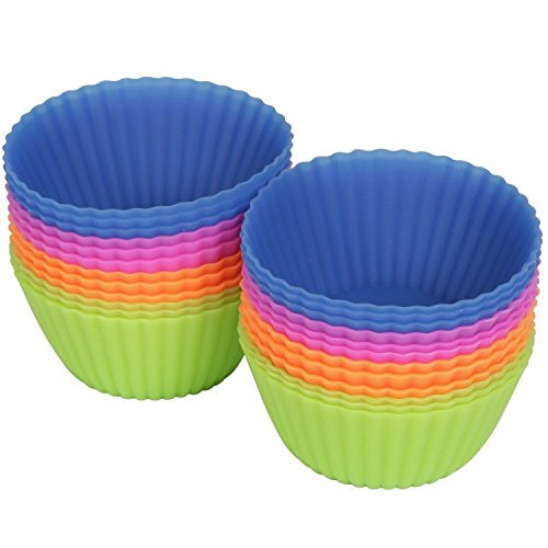 Simple & Sweet (4 Color) Food Grade Silicone Baking Muffin Cupcake Liner Mold Set, 24 Piece