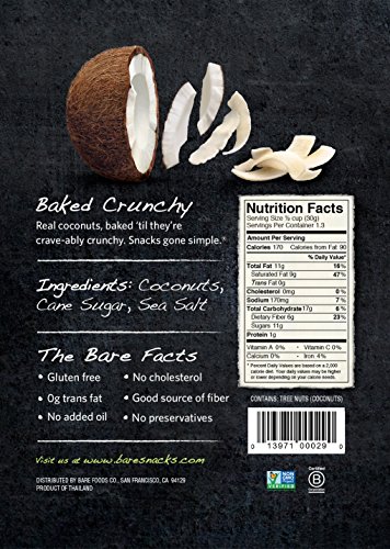 Bare Natural Coconut Chips, Toasted, Gluten Free + Baked, 1.4 Ounce (12 Count)