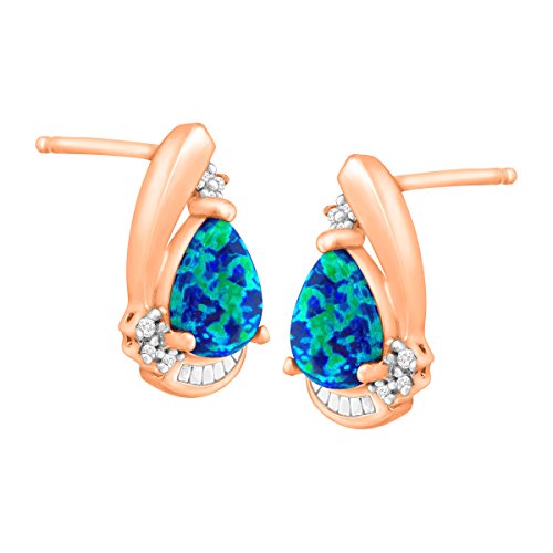 -. Feature : 1/2 ct Created Blue Opals / Diamond Accents / Crafted in 18K Rose Gold Over Sterling Silver / Measure 1/2 by 1/4 Inches