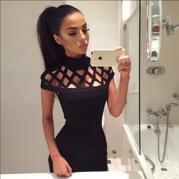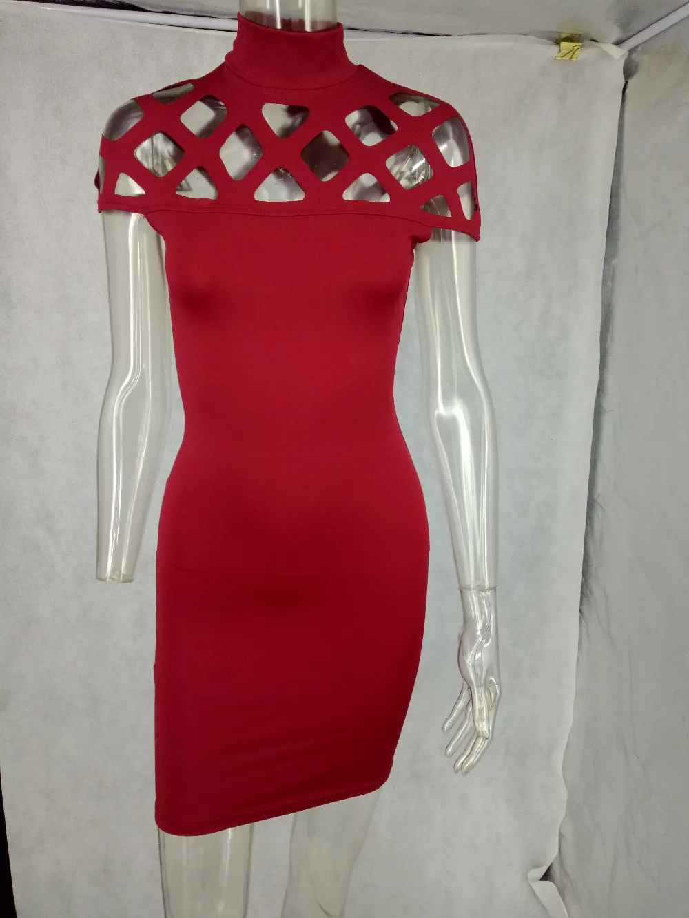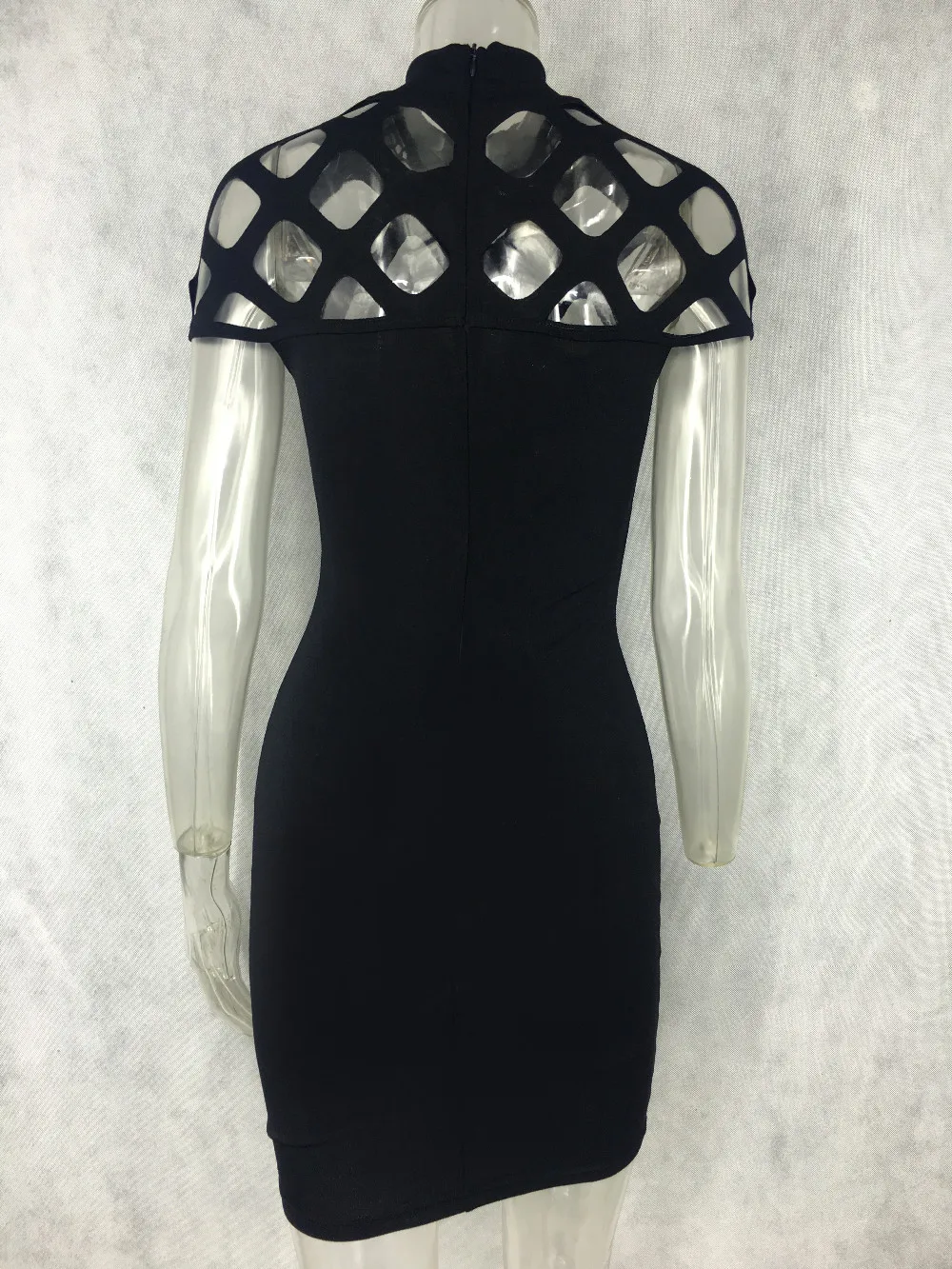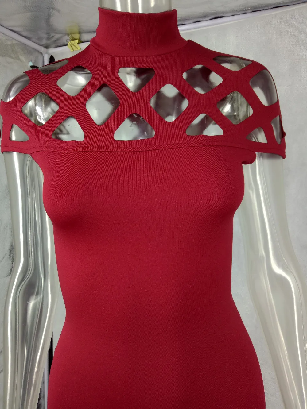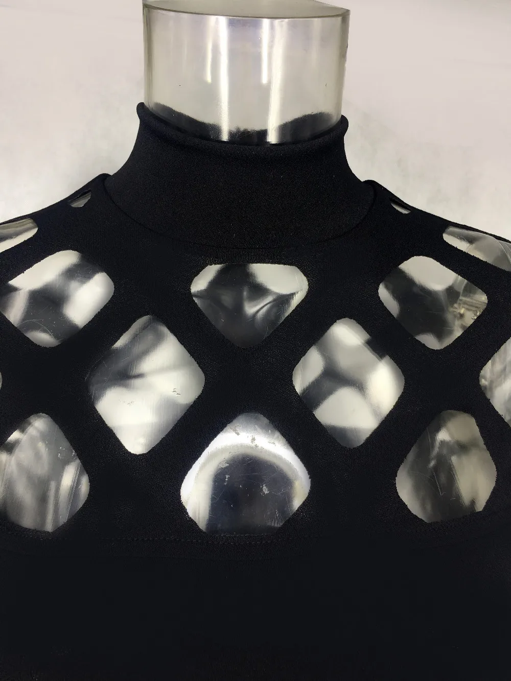 wholesale new autumn black red high neck evening party dress sexy short sleeve hollow out top women bodycon bandage dresses
