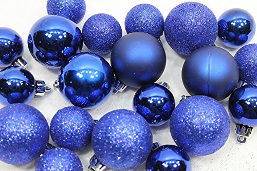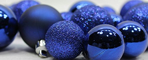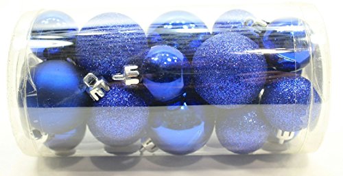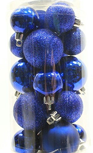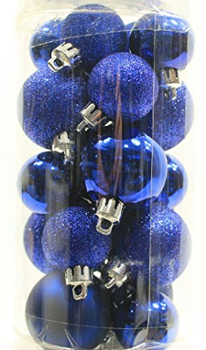 20 Mini Potomac Banks 1 ¼ inch Shatterproof Round Satin Shiny Glitter Christmas Ornament Decoration, Dark Blue