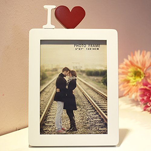 Talented Things 5x7 Wooden Photo Frame in White with I Heart in Red, I Love You, Contemporary, Valentines Day, Mot
