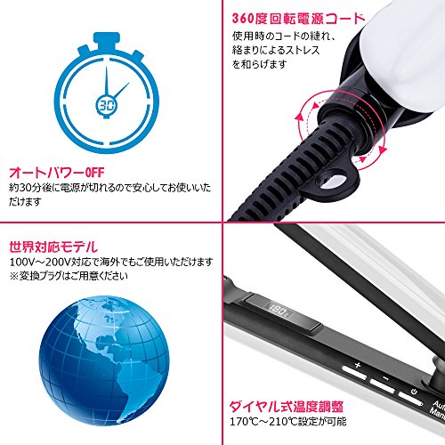 【온도 조정】LED온도 표시,170도부터 230도까지 조절 가능합니다.머리의 상태나 발질 에 맞게 해 이라고 적당한 온도가 조절로 옵니다.30 분자동 전원OFF기능 첨부 오고, 만일 전원이 잘라 잊 시에도 걱정 없어 안전합니다.