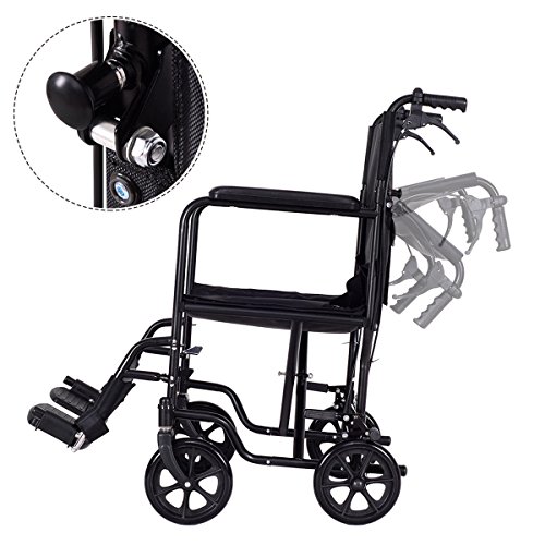 Studio : MTN Gearsmith Publisher : MTN Gearsmith Binding : Health and Beauty Product Description Description Goplus's Steel Transport Wheelchair features a durable steel frame that provides reliable stability while maintaining the maneuverability of a lightweight mobility aid. This transport chair provides cushioned armrests, superior navigation in narrow indoor layouts, and is specially designed for easy operation independently or with assistance. The nylon seat upholstery is simple to clean and the footrests swing away for seamless mounting and dismounting. Upholstery handles allow the chair and backrest to fold flat for transportation and storage. Feature High quality and brand new Made of high quality PVC wheels and steel frame. Chair and backrest fold flat for easy transportation Cushioned armrests and swing away footrests ensure comfort Nylon seat upholstery is simple to clean Safety Seat Belt Specifications Color: Black Material: PVC Steel Diameter of wheel: 8" Overall Size :34"x20.5"x38.5" (DxWxH) Folding Size: 35.4"x11.8"x30" (DxWxH) Weight Capacity: 220 lb Product weight: 28lbs. Package include: 1 x manual wheelchair 0