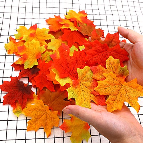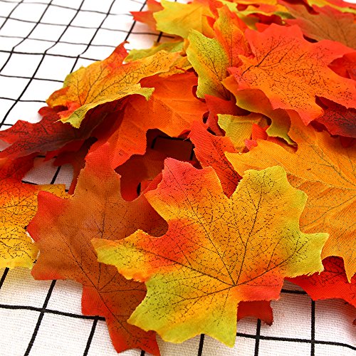 MCpinky 300PCS Artificial Maple Leaves Multicolor Mixed Autumn Fall Leaves Bulk for Wedding Event Christmas House Decoration, 3"