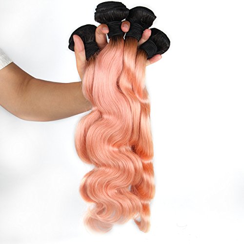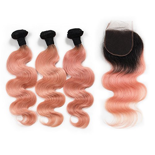 Material: 100% human virgin hair bundles with lace closure Color:1B Pink Length:14inch-22inch Weight: about 100g per bundle Texture:Body Wave NOTE: The length is measured after the hair extension is fully stretched.