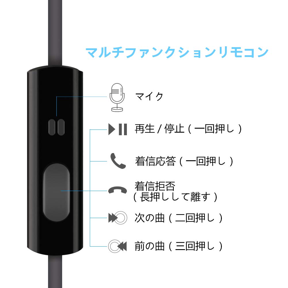 【マイク付き&マルチファンクションボタン】マイク付きリモコンで、スマホをポケットから取り出すことなく、電話に出られます。忙しい時に慌てることなく、ボタンを操作するだけで、音楽の再生/停止、着信の応答や拒否ができます。(音量調整ボタンは付いておりませんので、予めご了承ください。)